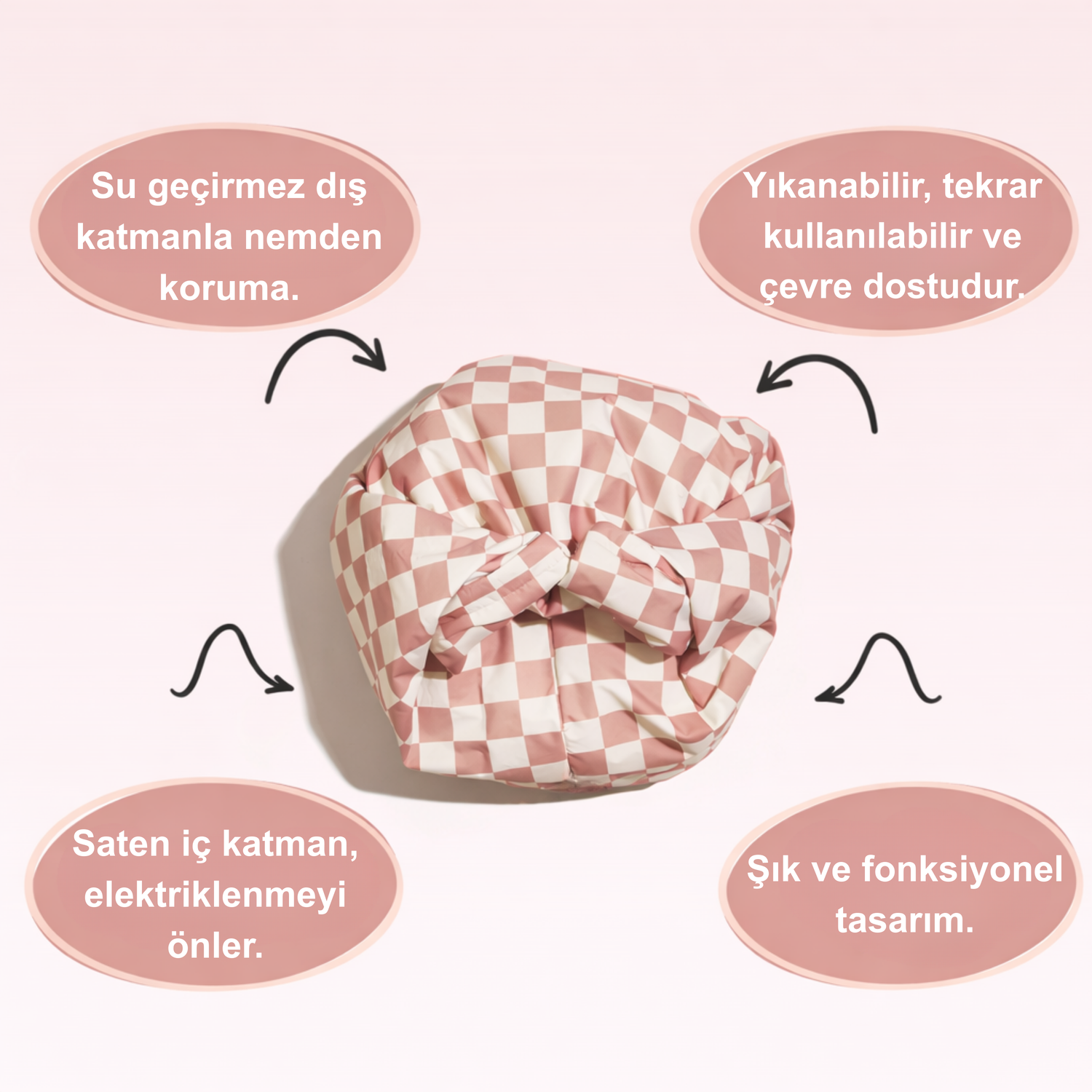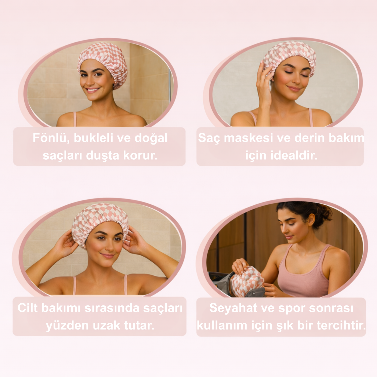 Saten astarlı duş bonesiyle şık bir duş deneyimi sizinle.